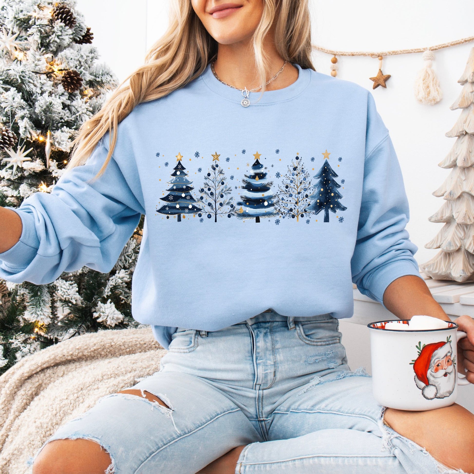 This is a beautiful design for the Christmas Season! You are able to choose your size and if you want a short sleeve, long sleeve or sweatshirt! Color options are gray, light blue or light pink.